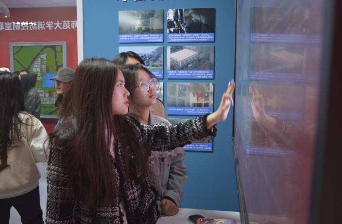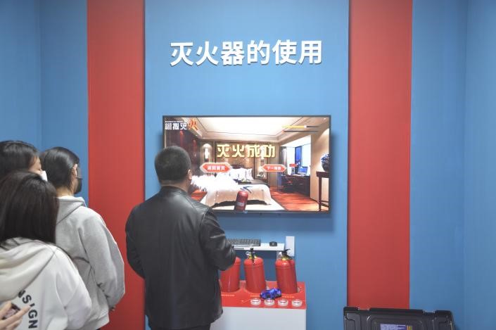 此外,同学们积极互动,通过在显示屏上寻找各类安全隐患、消防安全知识抢答,让同学们在实践的过程中学习消防知识。最后,同学们严肃有序地进入模拟烟雾逃生通道,熟悉应急避险的正确方法。
