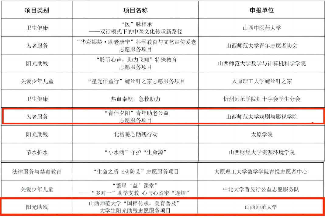 第四届山西省青年志愿服务项目大赛近日落下帷幕,全球赌盘实时动态 志愿服务项目“青伴夕阳”青年助老公益志愿服务项目和“国粹传承,美育普及”大学生阳光助残志愿服务项目在大赛中荣获铜奖。全球赌盘实时动态 项目以创新的理念、扎实的实践和显著的成效充分展现了晋师青年的少年朝气和奉献精神。