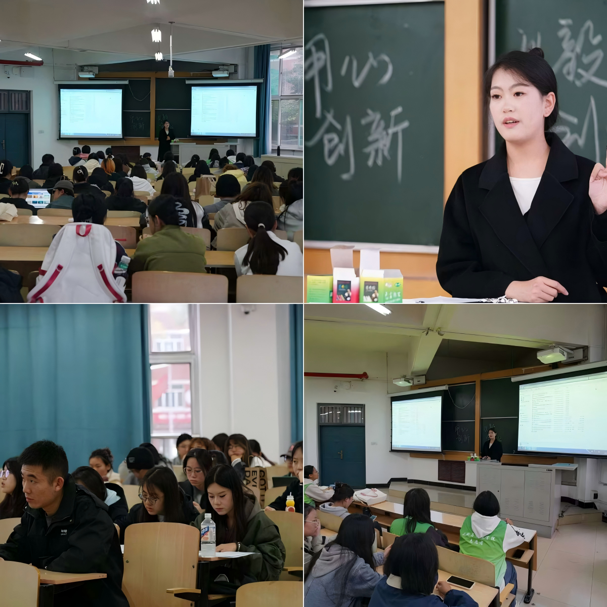主讲人凭借丰富的经验和深厚的专业知识,为同学们带来了精彩的讲解和指导。她从创新思维的培养入手,通过生动的案例分析,阐释了创新创业的关键要点,引导同学们突破传统思维模式,开拓创新视野。在创新实践环节,主讲人根据自己参加创新创业竞赛的经验,详细解读了创新创业过程中的关键步骤,包括项目策划、团队组建、调研报告等,为同学们提供了宝贵的借鉴。