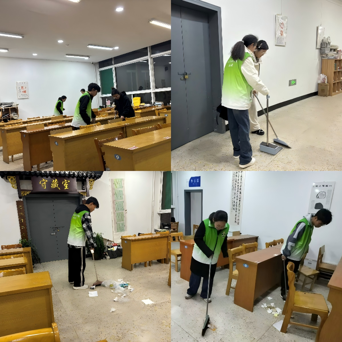“爱之家”青年志愿者协会与山西师范大学图书管理委员会于2024年10月31日在学校图书馆开展了“净美书阁处,焕亮阅读路”图书馆志愿清扫活动。
