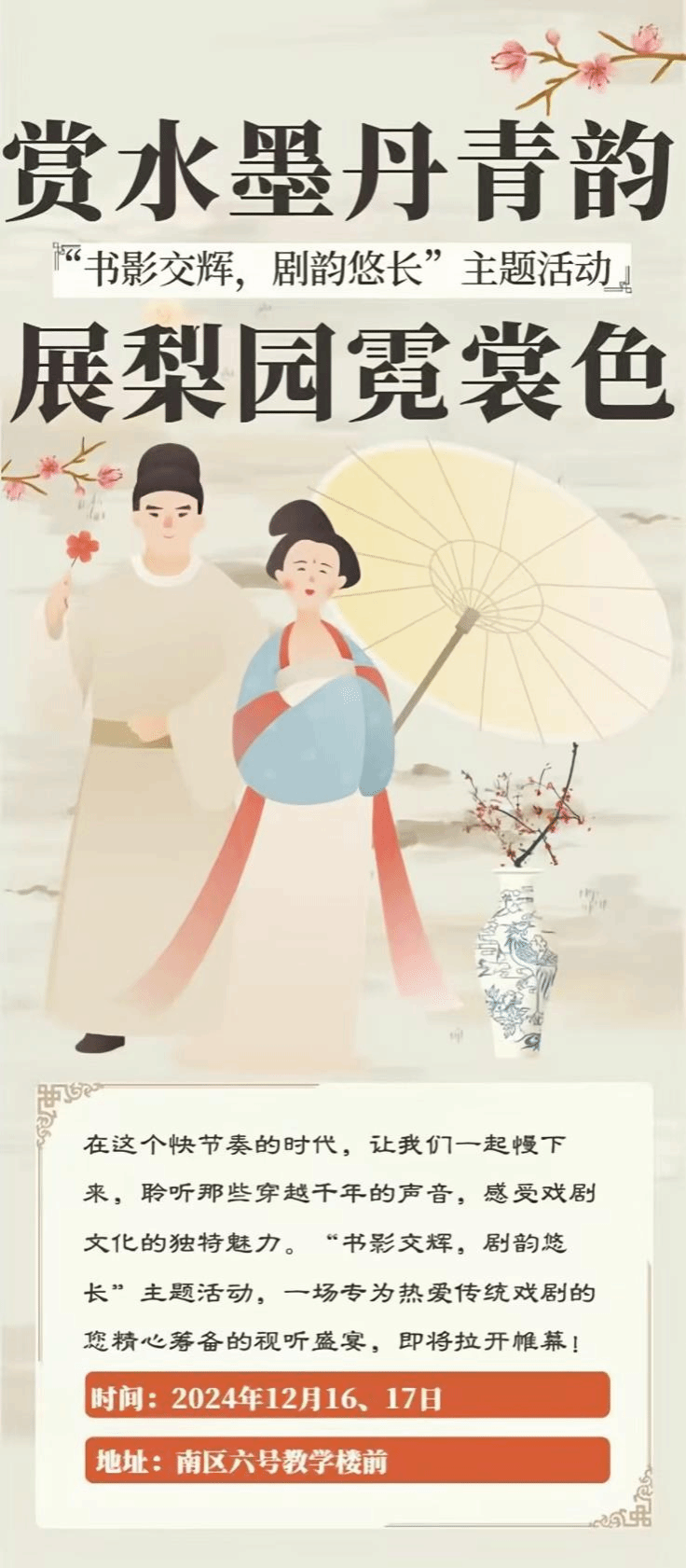 “爱之家”青年志愿者协会与山西师范大学图书馆学生管理委员会将于2024年12月16-17日在南区六号楼前举办“书影交辉,剧韵悠长”主题活动。