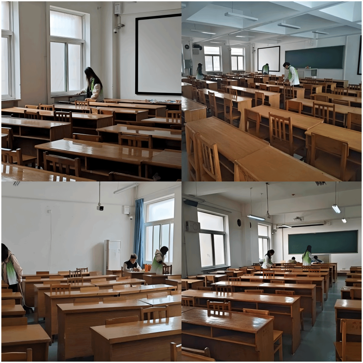 活动中,志愿者们身着统一的服装,手持抹布与扫帚,迅速而有序地投入到清扫工作中。他们仔细擦拭黑板,确保无一丝粉笔灰残留;认真清扫地面,使之光亮如新;并整齐排列桌椅,为同学们打造了一个整洁有序的学习环境。在大家的共同努力下,信息楼教室焕然一新,展现出别样的风采。
