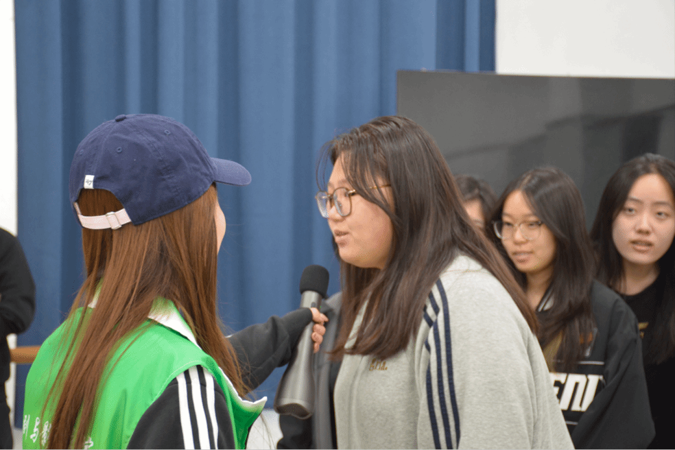 “抓鸭子!抓几只?”的经典口令点燃全场。各小组以声浪分贝、反应速度一决高下,从“抓三只”的常规应答到“抓2x3只鸭子”的创意脑洞,欢笑声此起彼伏。简单游戏里,是协作的智慧与青春的肆意张扬。