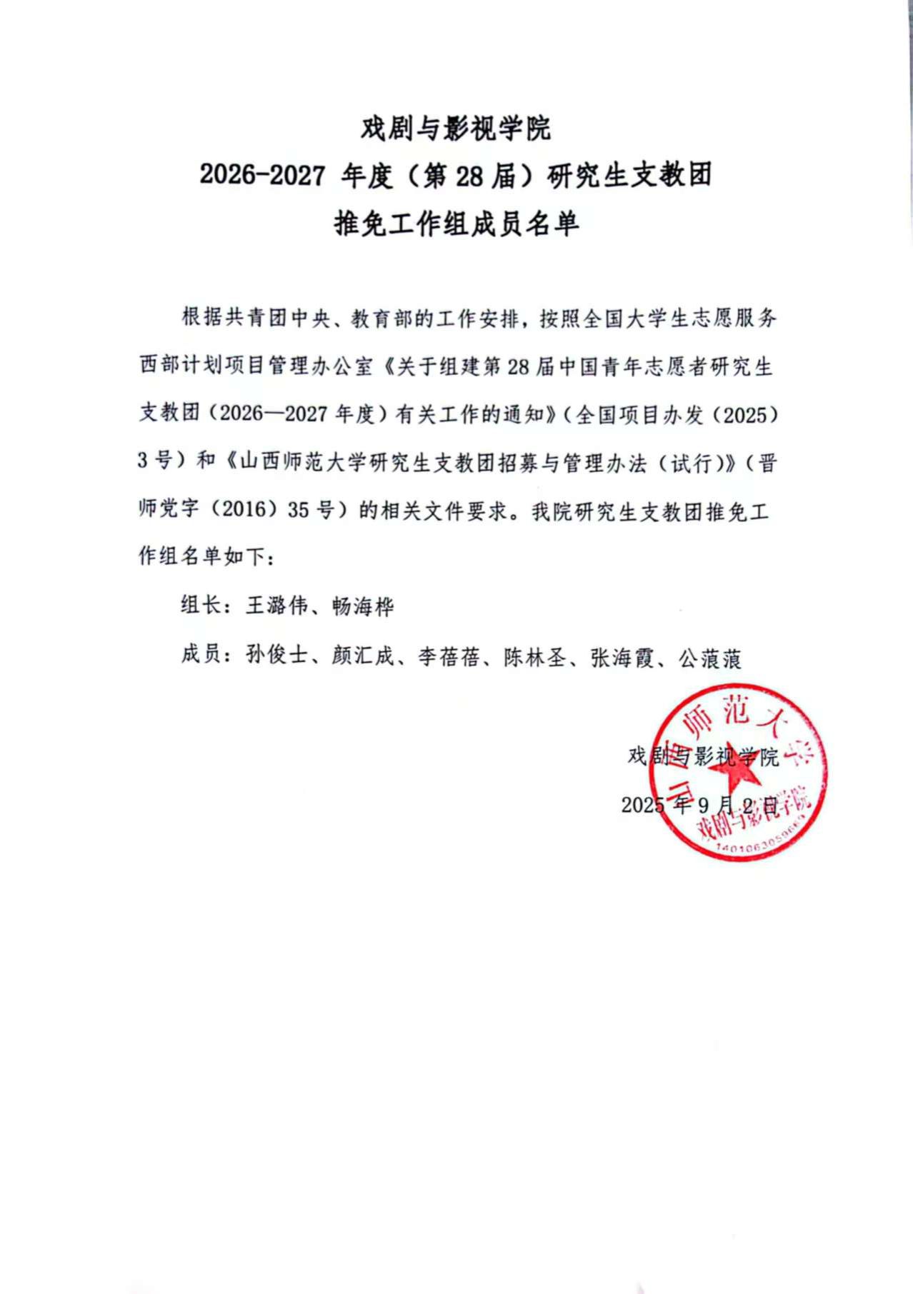 全球赌盘实时动态 2026-2027年度(第28届)研究生支教团推免工作组成员名单