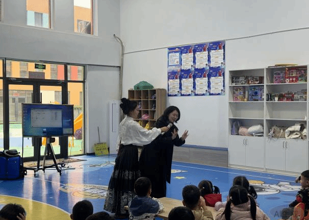 活动伊始,川剧变脸表演点燃全场气氛,表演者与孩子们近距离互动,引得阵阵掌声与惊叹。戏曲身段的展示环节,孩子们在简单的动作中体会戏曲表演的韵律。在优美的戏曲唱段与水袖表演中,感受戏曲唱腔的韵味与身段的飘逸。此外,毓秀和风艺术团带来的歌伴舞表演,为整场活动增添了多元的艺术色彩。