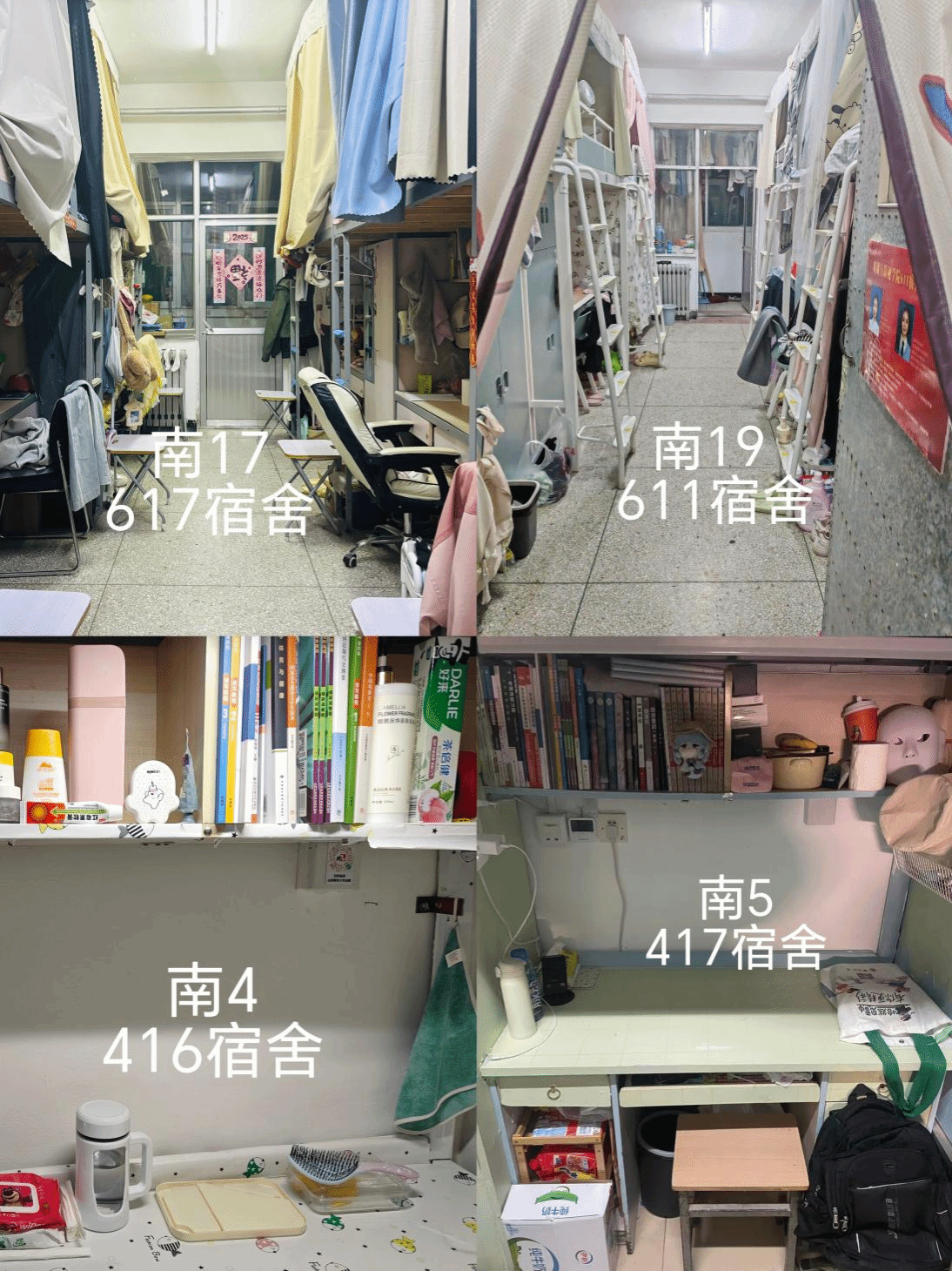 优秀宿舍:南区17号楼617宿舍,19号楼611宿舍,4号楼416宿舍,5号楼417宿舍