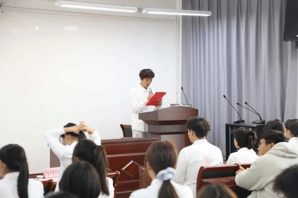 学院团委负责老师李蓓蓓带大家深化对中国共产主义青年团的认识,并围绕大学生活对团员先进性的期望展开讲话,她提出:一是要坚持勤奋学习;二是要弘扬爱国主义精神;三是培养高尚品德,树立远大理想。随后学生团委负责学生苏籽懿向大家介绍了“第二课堂”的相关内容,并围绕当今充满机遇与挑战的时代特征,号召团员要在中国共产主义青年团的引领下坚定信念,不忘初心,为中国共产主义事业奉献出自己的青春力量。最后2025级新生代表闫茹萱同学围绕“增强社会责任感,做有担当的共青团员;刻苦学习,做学习的榜样;守纪守规,提高组织意识;政治意识高,坚定信念”四个方面进行发言,以具体的语言鼓励大家,用镜头与舞台书写无愧于时代、无愧于人民的青春答卷!