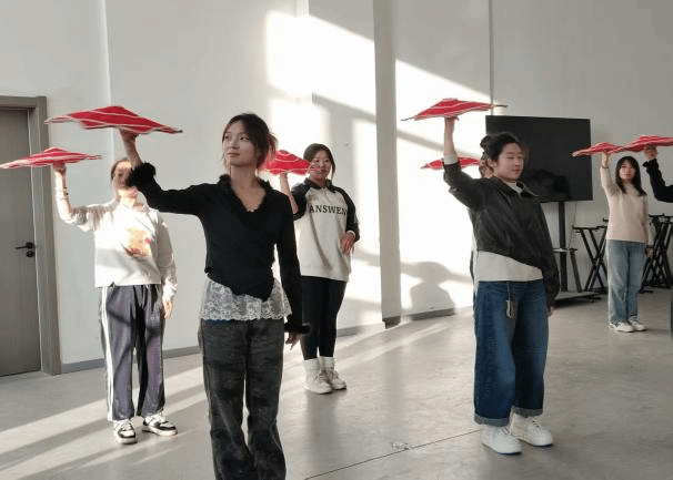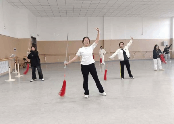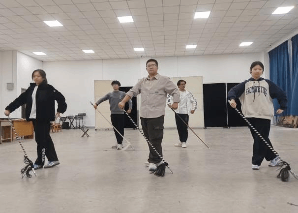 在教学环节,指导老师们手把手教学,针对不同技艺进行细致指导:转手绢、收水袖的技巧让大家领略柔美韵味;花枪、剑花的动作要领让学员体会阳刚之气。课堂上,老师们示例规范、讲解细致,同学们学习热情高涨,氛围活跃而有序。