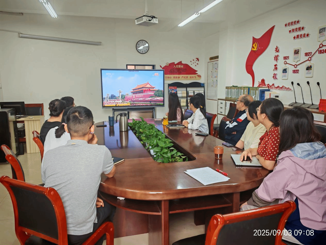 会人员共同观看纪念中国人民抗日战争暨世界反法西斯战争胜利80周年阅兵仪式,之后畅海桦书记带领与会人员就以上内容进行深入研讨学习。